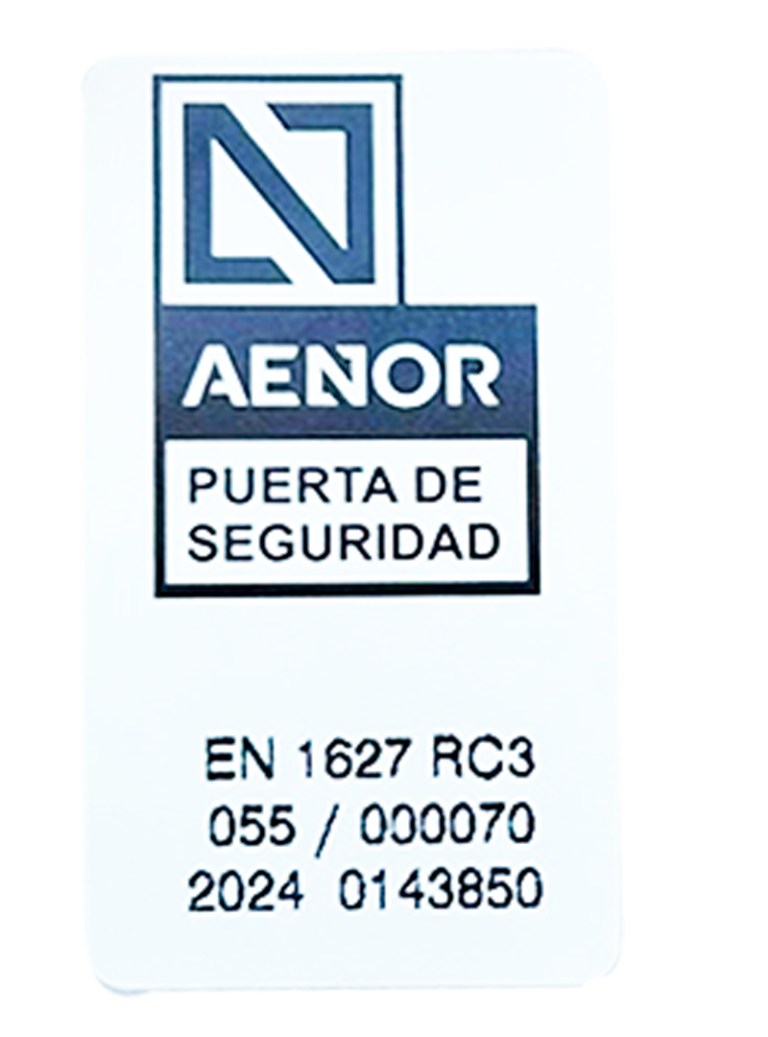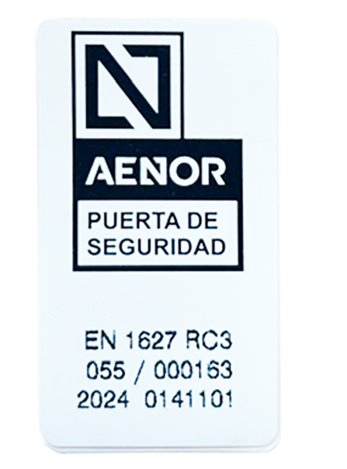 Nuestras puertas van certificadas por un laboratorio homologado con el que se ensaya la resistencia a la efracción y como recoge la norma obligatoria en vigor UNE E 1.627:2011.