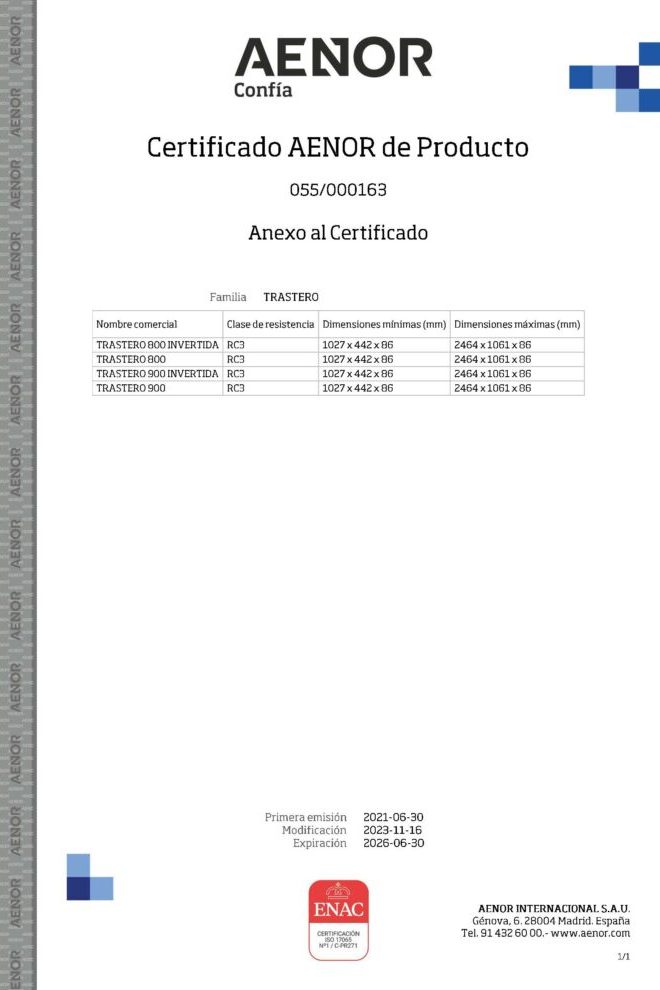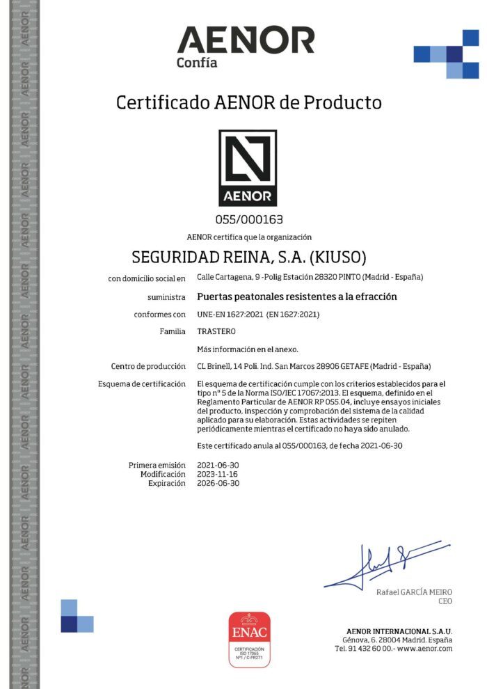 Certificado de producto de RC3 por AENOR según la norma UNE EN 1627:2021